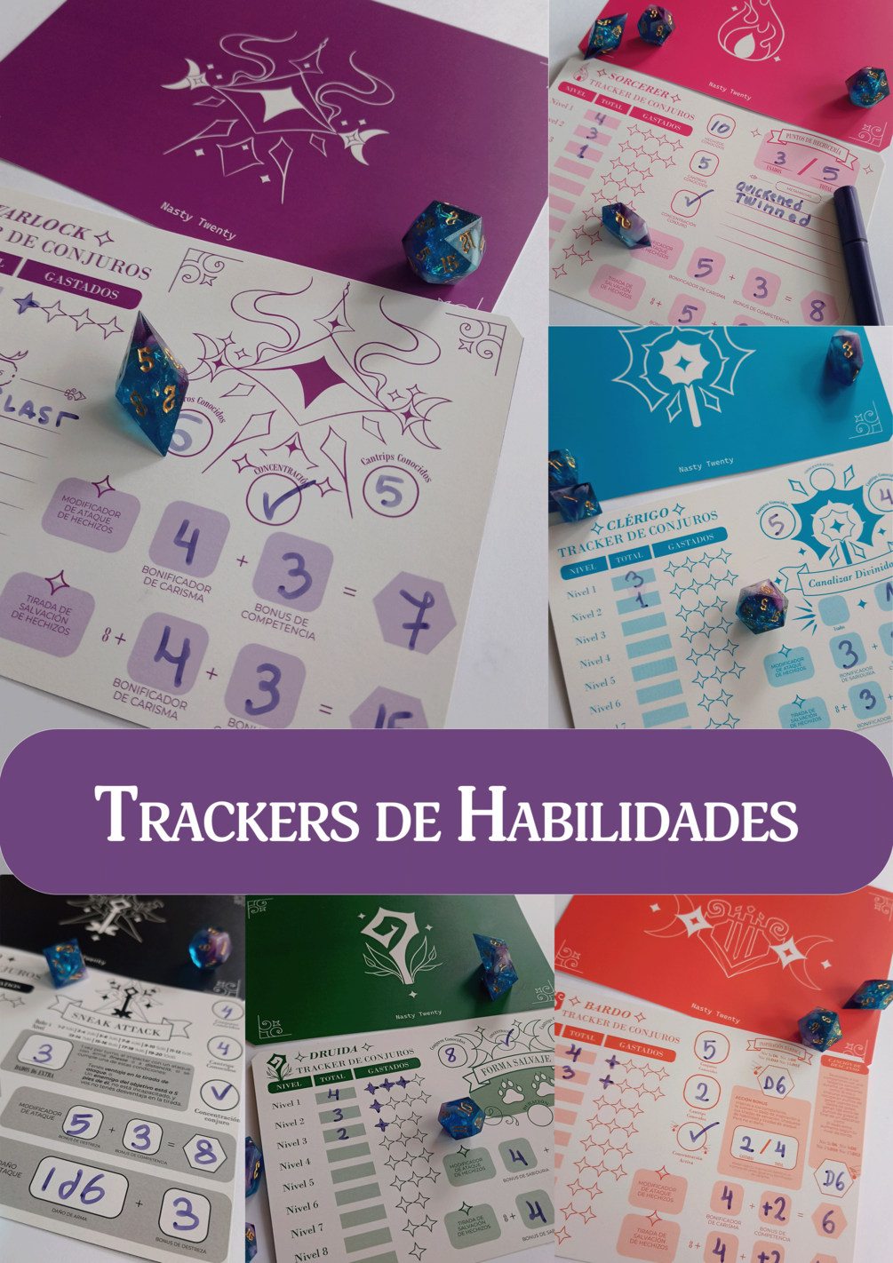 🎲 Ideal para bardo, pícaro, warlock, druida o la clase que juegues. ¡Organizá todo lo que tu personaje puede hacer y enfocáte en rolear a full! 💫